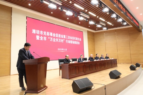 2025年11月18日,潍坊市光彩事业促进会第二次会员代表大会暨全市“万企兴万村”行动现场推进会在潍坊寿光召开。市委常委、秘书长、统战部部长赵绪春出席会议并讲话,寿光市委书记李鹏致辞,市委统战部分管日常工作的副部长李全吉主持会议,市委统战部副部长、市工商联党组书记、常务副主席刘兴成当选市光彩事业促进会会长。集团总裁朱九洲当选市光彩事业促进会副会长并作表态发言。